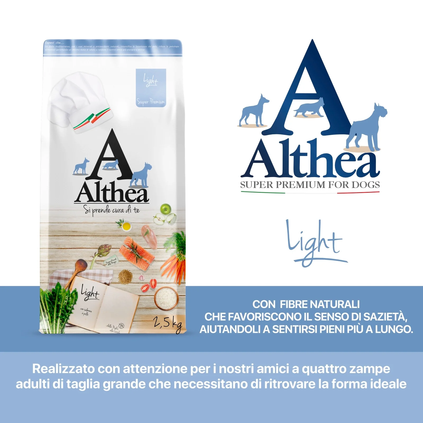 Η Althea Light είναι μια πλήρης ξηρή τροφή, σχεδιασμένη για μεσαίου μεγέθους υπέρβαρους ενήλικους σκύλους.