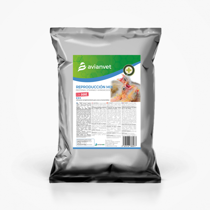 Το Avianvet Reproducción Mix είναι ένα πλήρες συμπλήρωμα πρωτεΐνης και αμινοξέων ειδικά σχεδιασμένο για πτηνά στην περίοδο αναπαραγωγής και πτερόρροιας.
